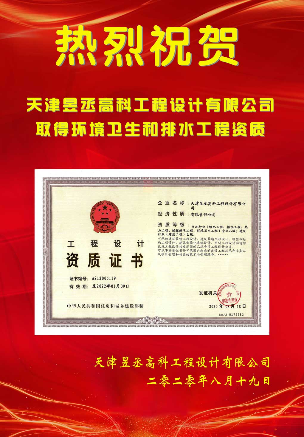 主頁>>公司新聞>喜賀我司取得環(huán)境衛(wèi)生和排水工程資質(zhì)